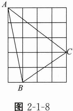 6. 如图2-1-8,在正方形网格中,每个小正方形的边长均为1. 在网格上的$\triangle ABC$中,长度是无理数的边有(