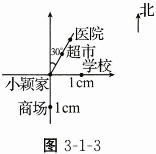 例2 图3-1-3是小颖家与周围建筑物的位置关系示意图,对小颖家来说: