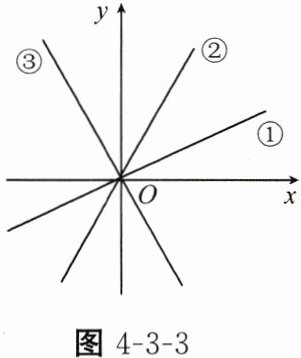 8. 如图 4 - 3 - 3,若三个正比例函数的图象分别对应的解析式是①$y = ax$;②$y = bx$;③$y = cx$,则$a$,$b$,$c$的大小关系是