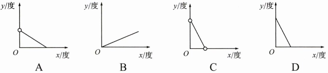3. 下列图象中,能反映等腰三角形顶角的度数y与底角的度数x之间的函数关系的是(