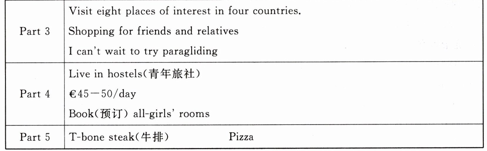 ) 35. Which isn’t in Helen’s Travel Plan?A. Time. B. Places. C. Clothes. D. Food.