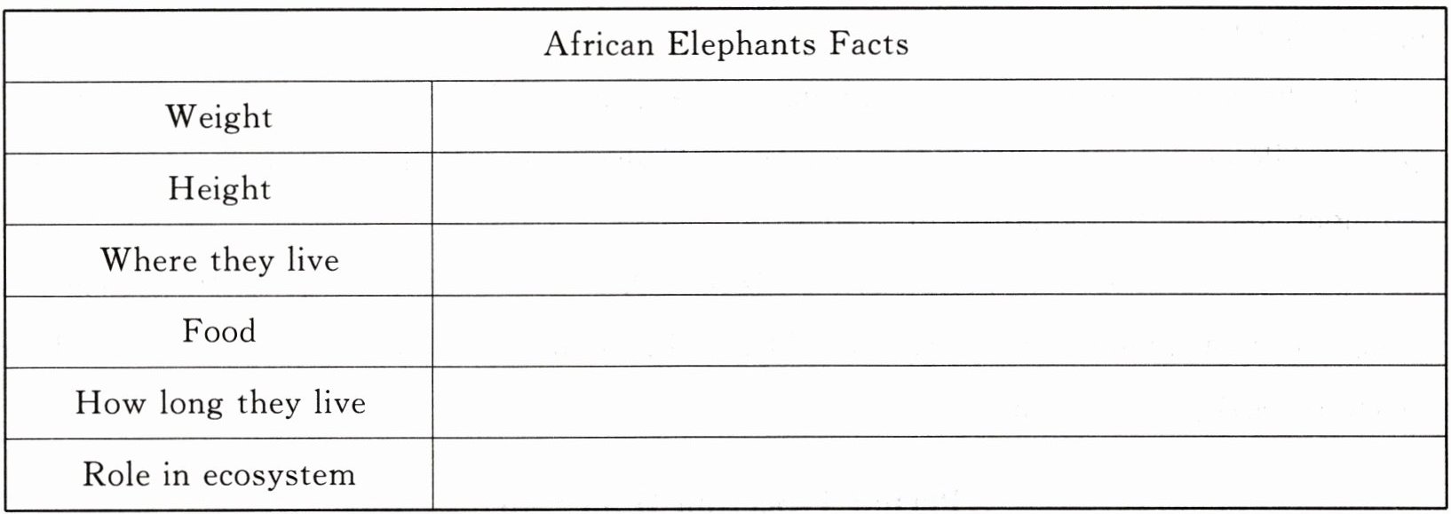 African elephants can live to 60 - 70 years. When an elephant dies, its body provides food for other animals like hyenas(鬣狗) and vultures(秃鹫). Even its bones help enrich the soil, allowing new plants to grow. Elephants also dig water holes that other animals use, creating a balanced ecosystem.