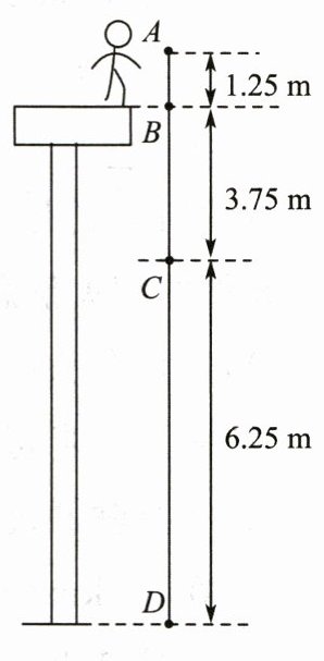 2. (2024·江苏无锡新吴区一模)我国运动员在2023年世界泳联跳水世界杯西安站女子单人10米跳台预赛中,出色地完成了“207C”动作。将其下落阶段中的一段运动简化为直线运动,其中A、B、C、D四点是她下落过程中的四个位置,相邻两点间的时间间隔为0.5s,距离如右图所示。关于此段运动,下列说法正确的是(