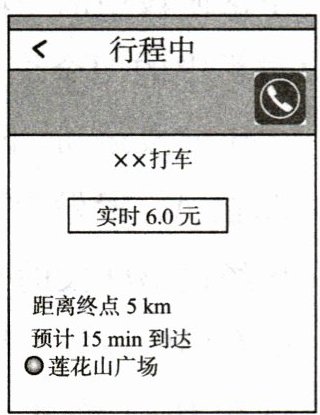 5. 右图所示的是小强在城东实验小学上车时手机上显示的“××打车”软件的相关信息。