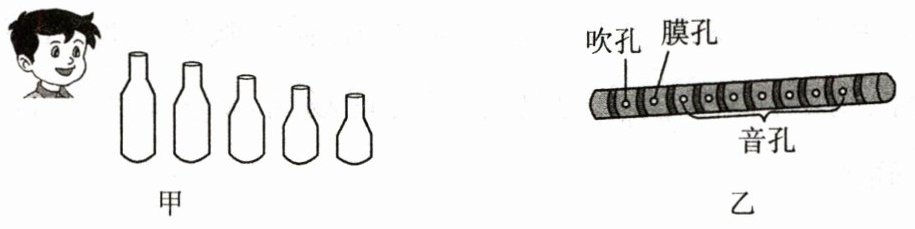 (3)应用上述实验结论,说明吹笛子时,用手指堵住笛孔(如图乙所示)能产生不同音调的声音的道理。