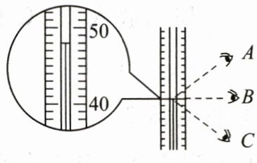 (2) 乙温度计为液体温度计,瓶中装有一定质量的红色水。为了给此温度计定标,将该温度计分别放入 10℃和 40℃的水中,待液面静止后,标出红色液柱到达的位置记作 A 和 C,则 40℃对应的刻度线是