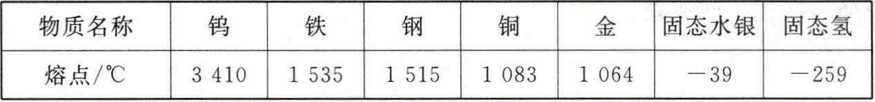 4. 在标准大气压下,根据下表中数据判断,下列说法正确的是(