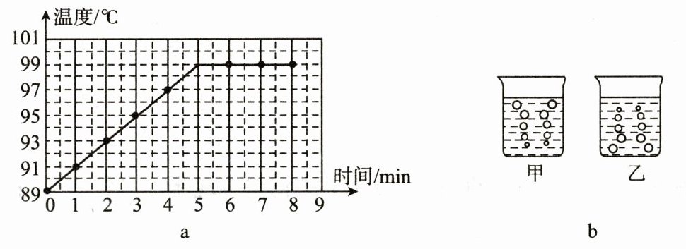 6.在“观察水的沸腾”实验中,当水温升到89℃时,小华开始计时,每隔1min记录一次水的温度,然后,小华根据实验数据绘制了图a所示的温度随时间变化的图像。下列说法正确的是 (
