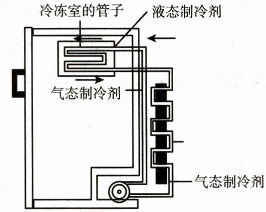 2. 某品牌冰箱使用的新型制冷剂 R600a 是一种对臭氧层破坏较小、极容易汽化又容易液化的物质。下图是制冷剂循环路线示意图,制冷剂在冷冻室的管子里发生的物态变化名称是