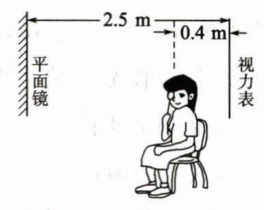 1. 如右图所示,医生在为小红同学检查视力,小红观看自己在平面镜中的像,她到自己像的距离是