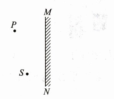 4. 如下图所示,S为发光点,请在图中画出发光点S在平面镜MN中所成像S'的位置,并画出由S点发出,经平面镜反射后通过P点的光线。
