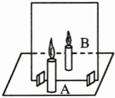 7. 小红同学在做“探究平面镜成像的特点”实验时,将一块玻璃板竖直架在水平台上,再取两支完全相同的蜡烛A和B。点燃玻璃板前的蜡烛A,进行观察,如下图所示。在此实验中: