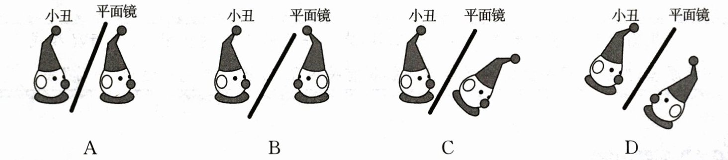 5. 下列图中能正确表示小丑在平面镜中成像的是(