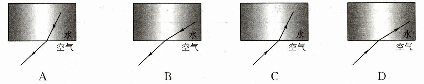 2. (2023·江苏常州中考)海洋公园内,北极熊站立在方形透明水族箱内,头在水面上、身体在水面下,水族箱外的游客居然看到了北极熊“身首异处”的奇异场景,示意图如右图所示。游客看到熊身体的光路图是(
