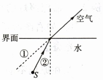 1. (多选)水中有一个点光源S,发出的一条光线从水中射入空气中,光路图如右图所示。人在岸上观察到点光源S成的像为S',则(