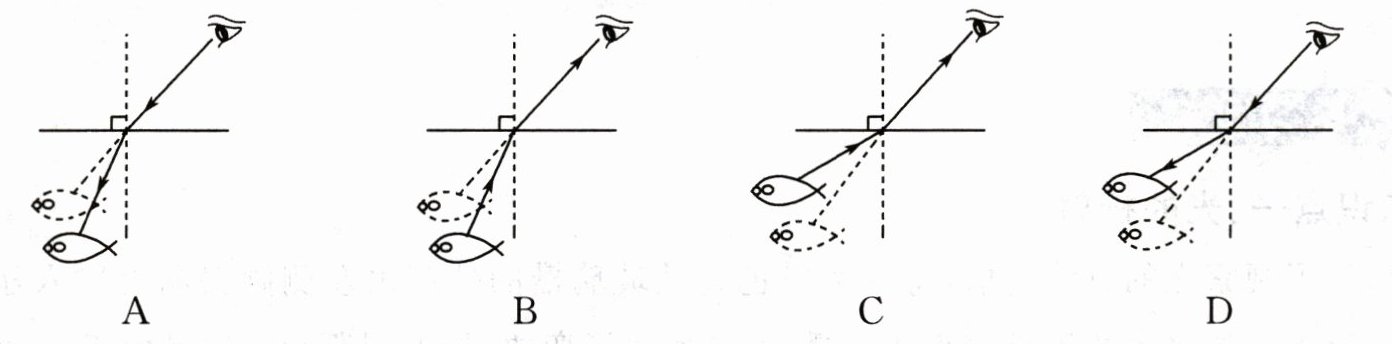 2. 岸上的人看到水中小鱼的光路图是下列选项中的(