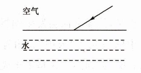 4. 如下图所示,在研究折射现象的实验中,使光从空气斜射入水中。请你画出法线、大致的折射光线,标出折射角。
