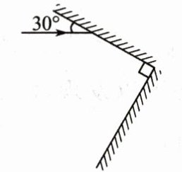 3. 自行车尾灯的反光原理如下图所示。请完成反射光路,并标出反射角的度数。