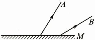 7. $ A $、$ B $ 是镜前一点光源 $ S $ 发出的光线经平面镜 $ M $ 反射后的两条反射光线,请在下图中标出点光源 $ S $ 和像点 $ S' $ 的位置,并完成光路图(保留作图痕迹)。