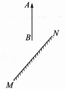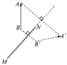 1. 如下图所示,请作出物体 $ AB $ 在平面镜 $ MN $ 中所成的像 $ A'B' $。