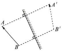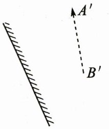 下图中 $ A'B' $ 是物体 $ AB $ 在平面镜中所成的像,请根据平面镜的成像特点作出物体 $ AB $。