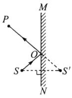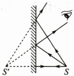 )A.$ S $ 发出的光线经镜面反射进入眼睛,逆着反射光线方向看到虚像 $ S' $