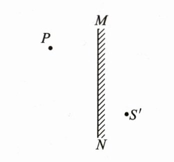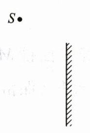 4. 如下图所示,点光源 $ S $ 置于平面镜前,请画出点光源 $ S $ 的成像光路图。