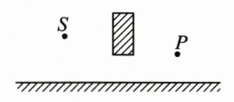 5. 如下图所示,请画出从点光源 $ S $ 发出的所有经过点 $ P $ 的光线的光路图。