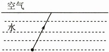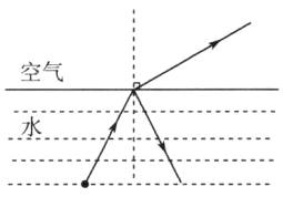3. 如下图所示,一束光从水中斜射向空气中,同时发生折射和反射,试在图中画出这束光的折射光线的大致方向和反射光线。