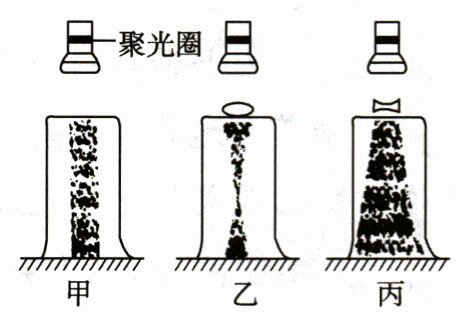 6. 一个大烧杯倒扣在桌面上,里边充有烟雾,用手电筒通过杯底自上而下照射,调节手电筒的聚光圈,使通过烟雾的光成粗细均匀的柱形光束(如右图甲所示)。