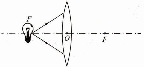 7. (2023·聊城中考)如下图所示,把小灯泡放在凸透镜的焦点上,请画出从小灯泡发出的两条光线经凸透镜折射后的光线。