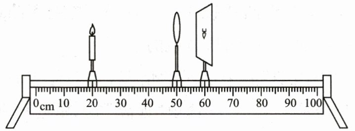 2. 小南同学在做“探究凸透镜成像的规律”实验中,经过调节在光屏上得到一个清晰的像,并测出物距$ u = 20 $cm,像距$ v = 15 $cm,则光屏上是倒立、