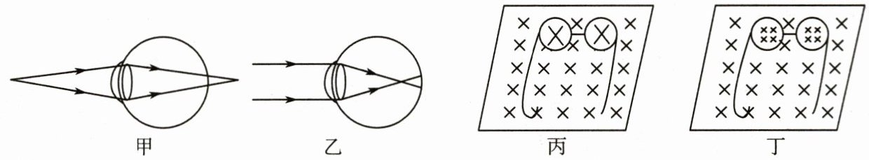 (选填“甲”或“乙”)图表示近视眼成像原理,应佩戴丁