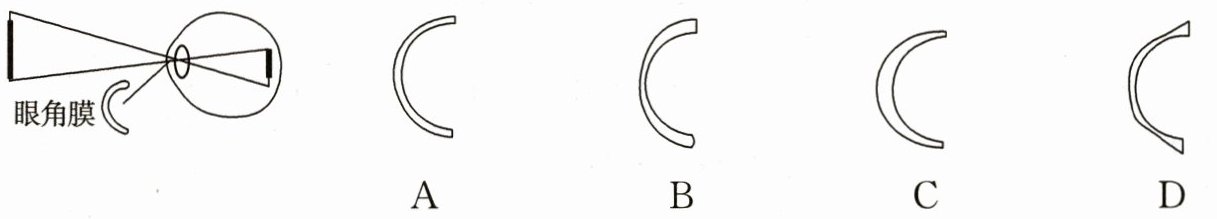 3. 小华视物时成像情况如下图所示,医生向她介绍激光手术:通过激光烧蚀厚度均匀的透明眼角膜,使之改变形状,实现视力矫正。手术后的眼角膜形状应为下图中的(