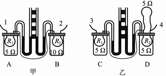 (4)修复图乙中D容器上方电阻丝后,通电一段时间,观察到如图乙所示的现象,可得出的结论是
