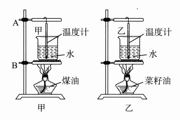 的位置。(均选填“A”或“B”)(2)为保证实验结论的可靠性,实验时应控制两套装置中相同的量有加热时间和水的