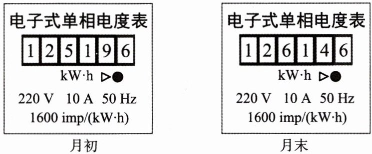 2. 下图所示的分别是小李同学家上月初和上月末的电能表的表盘。如果每度电按0.6元收费,则小李同学家上个月应交电费