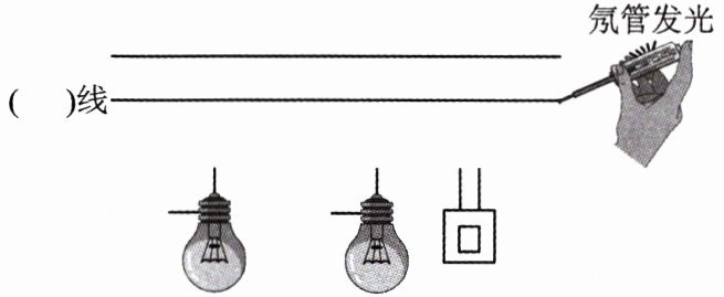 (2)由题图得,测电笔接触下面的电线,氖管会发光,说明此电线为相线,则上面的电线为中性线,家庭电路中,灯泡之间互不影响,采用并联方式,开关控制两盏灯泡,则开关在干路上,相线先连接开关,再经过开关,再分别连接灯泡的顶端金属点,再分别通过灯泡的螺口接线柱回到负极,如图所示: