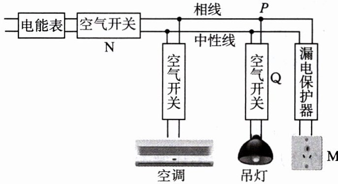 D.当N处的空气开关“跳闸”时,一定是空调和吊灯同时使用引起的