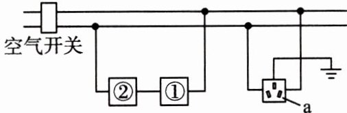 6.D 解析:由三孔插座的接法,可得上面的线是相线,下面的线是中性线,开关应与相线连接,故①处为开关,②处为电灯,故A错误;电能表是用来测量电路中用电器消耗电能的仪表,应接在空气开关之前,故B错误;空气开关切断电路有两种可能,要么电路中总功率过大,要么电路中有短路现象,若开关短路,电灯持续发光,空气开关不会切断电路,故C错误;用测电笔接触a孔中的金属片,相线、测电笔、人体与大地形成回路,氖管会发光,故D正确。故选D。
