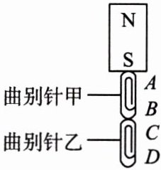 D.曲别针乙完全靠磁铁吸引在曲别针甲的下端