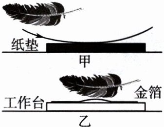 )A.摩擦使得羽毛和纸垫带异种电荷,异种电荷相互吸引