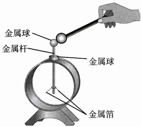 6. 用毛皮摩擦过的橡胶棒接触验电器的金属球,如下图所示,两片金属箔张开,下列说法正确的是(