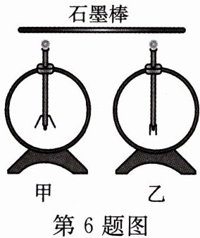 6.(2024·四川广元中考)如上图所示,在干燥环境中,取两个相同且不带电的验电器甲和乙,用毛皮摩擦过的橡胶棒接触甲的金属球,甲的金属箔片张开;再用石墨棒连接甲、乙验电器的金属球,观察到乙的金属箔片张开。下列对上述实验过程的分析,错误的是(