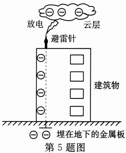 5.(2024·广东广州中考)如下图所示,带负电的云层靠近建筑物上的避雷针时,向避雷针剧烈放电形成雷电,下列说法正确的是(