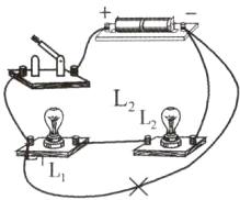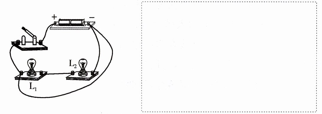 8. 下图是一位同学所连的电路,图中有一根导线接错了。请你找出这根接错的导线,在这根导线上打“×”(表示不要),并在虚线框中画出正确的电路图。