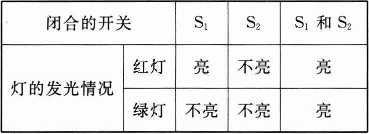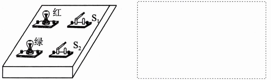 8. 下图所示的电路盒的面板上有红、绿灯各一个,两个开关S₁和S₂,为了在不打开盒子的情况下探究盒内的电路结构,小明做了多次实验并将结果填入下表。根据实验情况,在下边的虚线框中画出盒内的电路图。