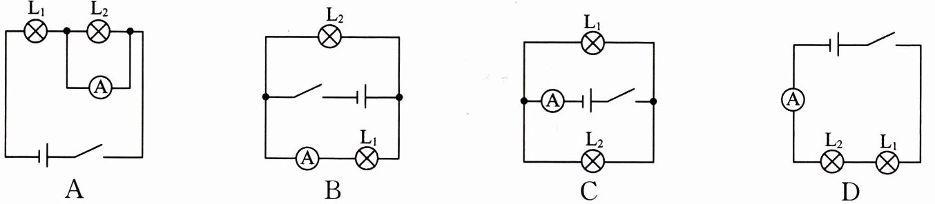2.(2024·四川达州模拟)下列图中能够直接测出通过灯L₂电流的电路是(