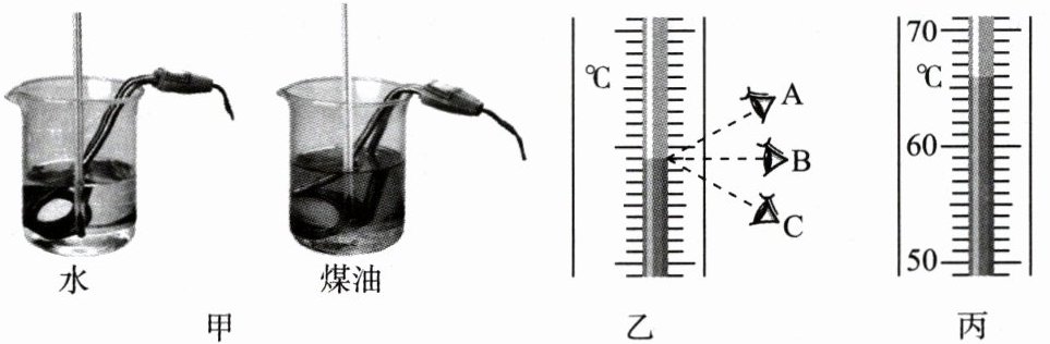 来比较不同物质吸热能力的强弱。(4)如图乙所示,小姜正确使用温度计测量液体的温度,按照图中