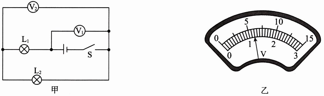 1.(2024·安徽淮北阶段练习)如图甲所示,在闭合开关 S 后,两个电压表的指针均偏转到如图乙所示的位置,则小灯泡 L₁ 两端的电压为
